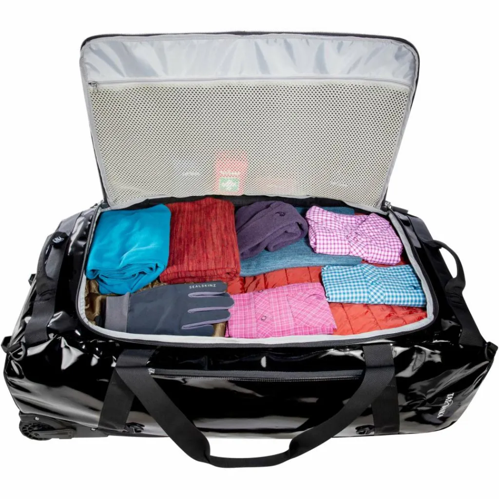 Der Tatonka Flight Roller 135 ist der Trolley für alle, die ein wenig mehr Reisegepäck mit sich führen. Denn die große Reisetasche mit Rollen bietet Reisenden mit 135 Litern eine ganze Menge Platz. Die Tasche aus robustem und pflegeleichtem, TPU-beschichtetem Nylonmaterial bietet sich vor allem für sperriges und großformatiges Reisegepäck an.