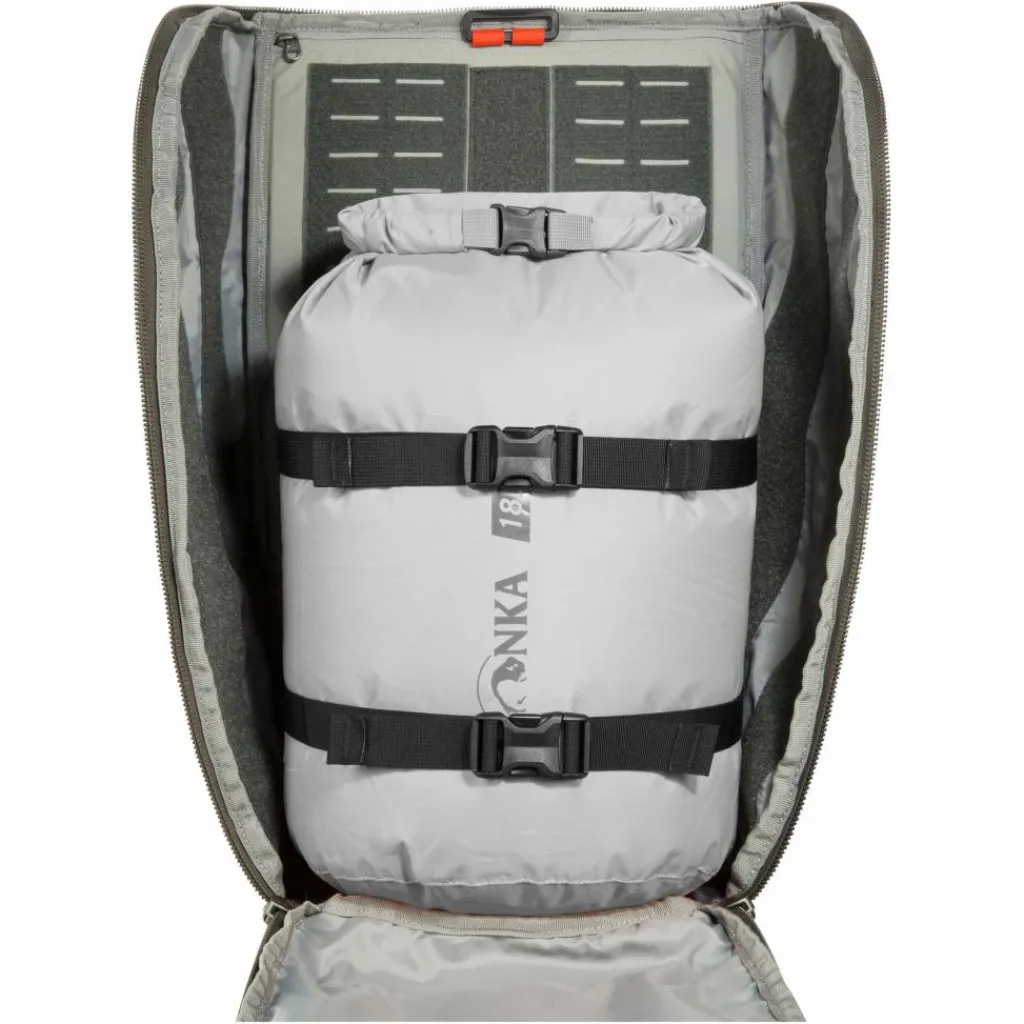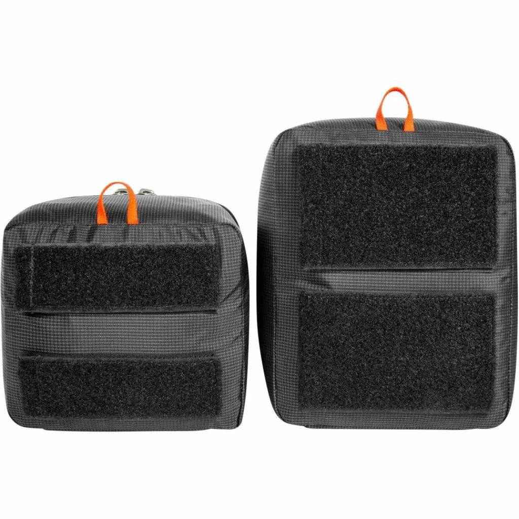 Das EDC Organisation Set von Tatonka besteht aus zwei gepolsterten Aufbewahrungstaschen, zwei Netztaschen mit Reißverschluss und zwei Kompressionsriemen. Alle Teile können in Rucksäcken angeklettet werden, die mit Klettflächen ausgestattet sind.