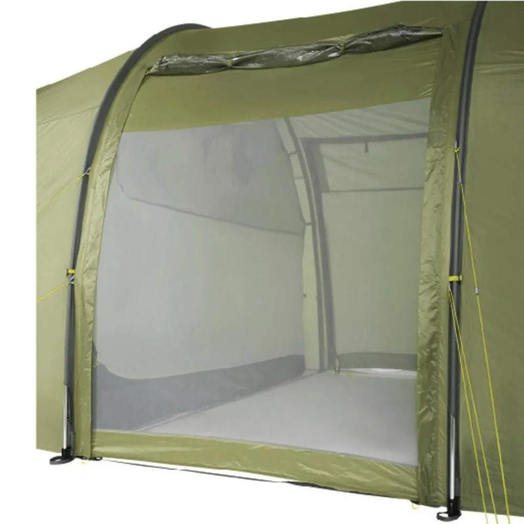Das Family Trek II ist ein Familienzelt mit Stehhöhe für drei Personen mit extra-großer Apsis. Mit einer Gesamtlänge von 6,70 Meter und der stehhohen Konstruktion ist das Familien-Tunnelzelt Family Trek II ein echtes Raumwunder. Es bietet eine geräumige Schlafkabine für drei Personen und einen äußerst großzügig bemessenen Vorraum, dazu zwei zentrale, gegenüberliegende Eingänge sowie Eingänge an beiden Stirnseiten. Für genügend Licht im Inneren des Zeltes sorgen Fenster in den Seiteneingängen und an den Stirnseiten.