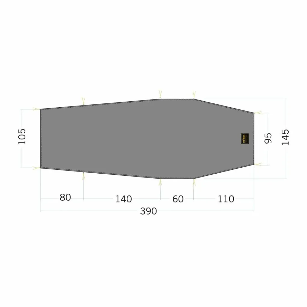 Die Unterlage ist passend für das gesamte Zelt, einschließlich der Apsis, und schützt den Zeltboden vor Schmutz, Beschädigungen und kondensierender Bodenfeuchtigkeit.