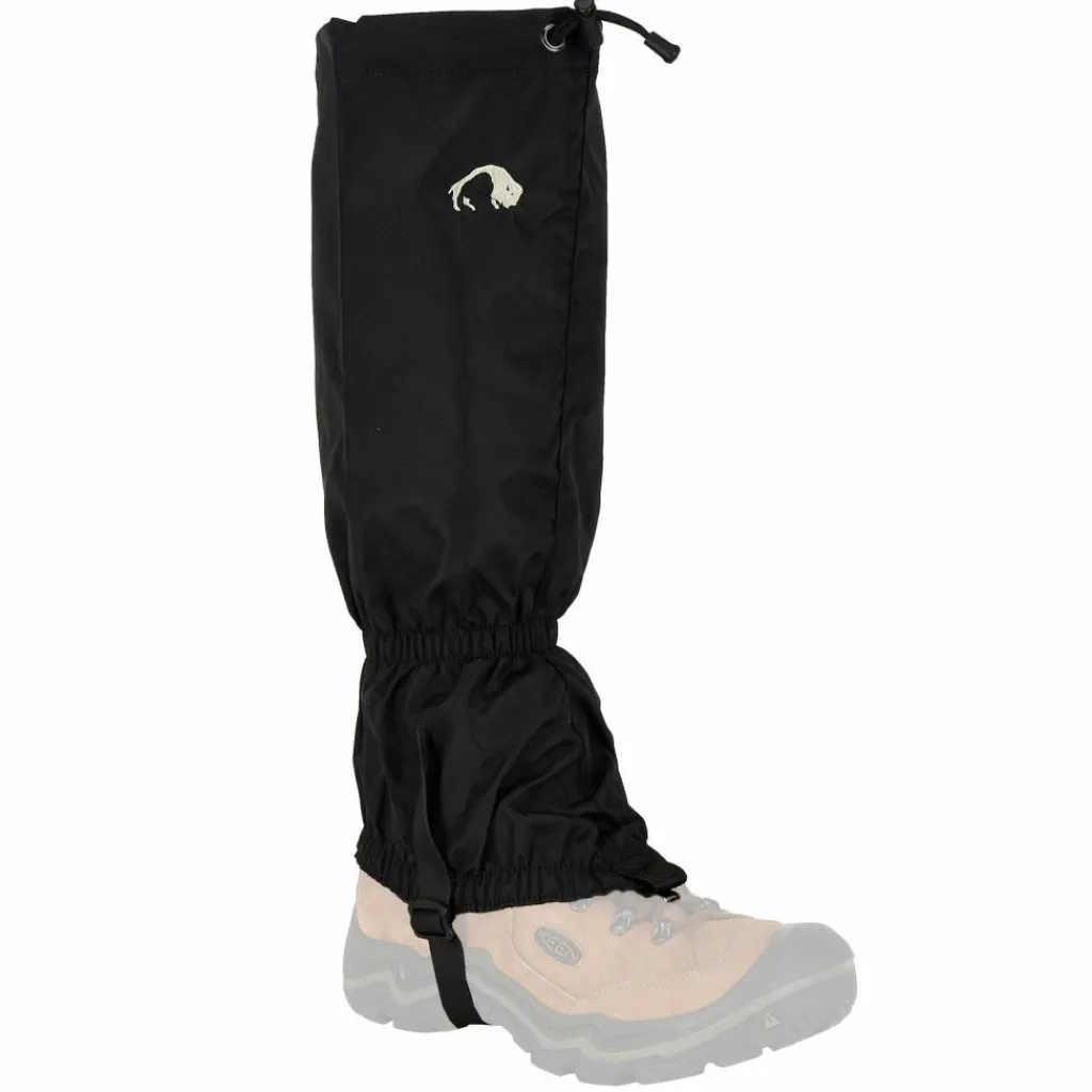 Gummizüge im Fußbereich und am Knöchel optimieren die Passform, der Schaft schließt mit einem Tanka-Verschluss ab und lässt sich in der Weite regulieren. Mit einem kräftigen, verstellbaren Riemen wird die Gamasche unter dem Schuh gehalten. Ein strapazierfähiger Metallhaken bietet die Möglichkeit, die Gamasche am Schuh zu fixieren. Geschlossen wird sie mit einem Reißverschluss. Das robuste, wasserabweisende Material schützt vor Regen, Gestrüpp und Geröll.