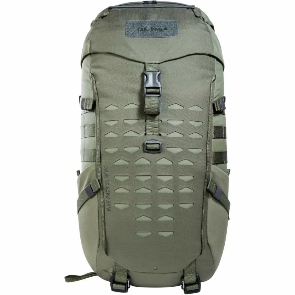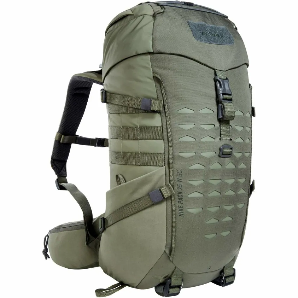 Axt, Messer, Tarp, Paracord, Hobokocher… alles kein Problem für den Hike Pack 25 W BC. Dank großflächig verteilter MOLLE-Schhlaufen an den Seiten und am Hüftgurt, mehrerer Daisychains sowie Lasercut-MOLLE auf der Front kannst du deine Ausrüstung mithilfe von Spanngurten und Materialkarabinern (optional erhältlich, siehe Zubehör) flexibel und griffbereit am Rucksack befestigen. Der Hike Pack 25 W BC lässt sich dadurch auch mit MOLLE-kompatiblen Taschen erweitern und perfekt auf dein individuelles Abenteuer anpassen.
