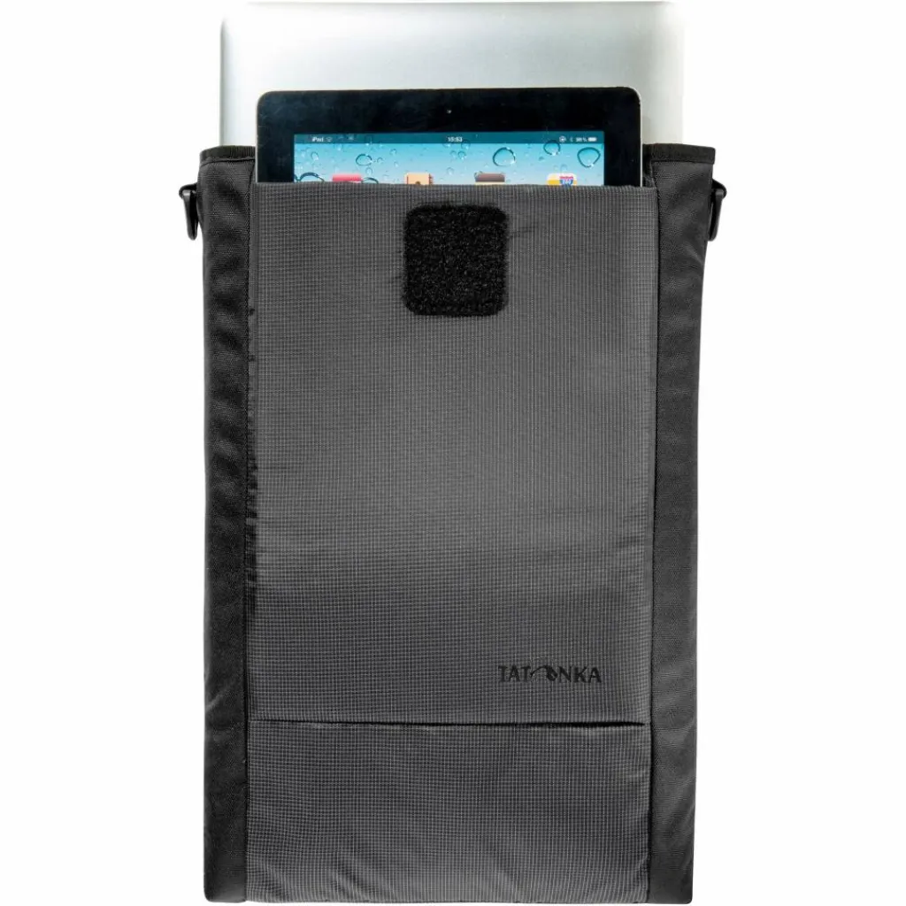 Diese gepolsterte Laptophülle eignet sich für 15-Zoll-Laptops. Auf der Front befindet sich außerdem ein Einschubfach für ein kleines Tablet. Die Hülle kann in jedem Rucksack passender Größe verwendet werden. Im Tatonka-Rucksack EDC Pack 30 BC kann sie auch eingeklettet werden, da sie eine abgedeckte Klettfläche auf der Rückseite besitzt.