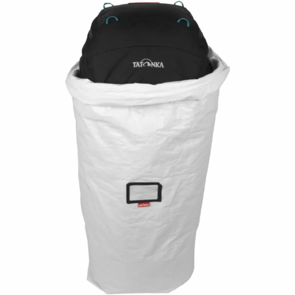 Stabile Rucksack-Schutzhülle mit Rollverschluss und Klarsichtfach für Namensschild. Ideal für den Flugzeug-Transport. Geeignet für Rucksäcke bis 130 Liter.