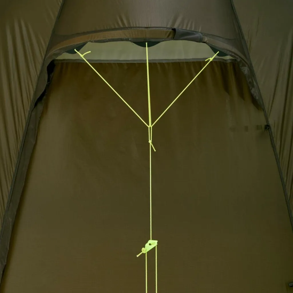 Lange Zeltleinen ermöglichen dir das Aufstellen des Zeltes an nahezu jedem Ort. Sie lassen genügend Spielraum, um das Zelt z. B. mit Ästen oder Steinen abzuspannen, wenn sich kein Hering in den Boden treiben lässt.
