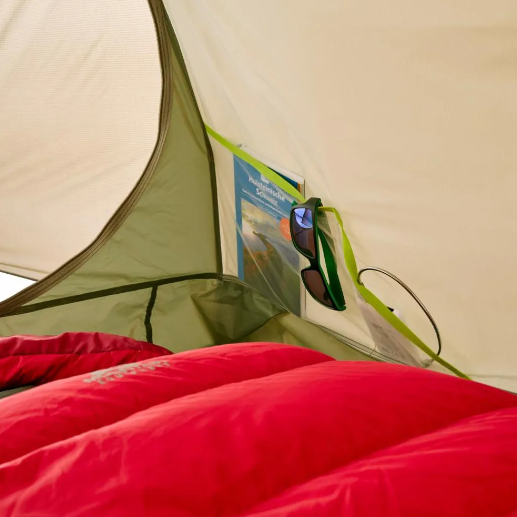 Durch das weit heruntergezogene Außenzelt sind selbst Touren bei gemäßigtem Winterwetter möglich. Große Lüfter sorgen bei sommerlichen Temperaturen hingegen für ausreichende Belüftung im Innenzelt. Sie sind mit einem Moskitonetz verschlossen, damit keine Insekten in die Apsis gelangen können. Muss aber für maximale Belüftung gesorgt werden, kannst du das Moskitonetz auch öffnen.
