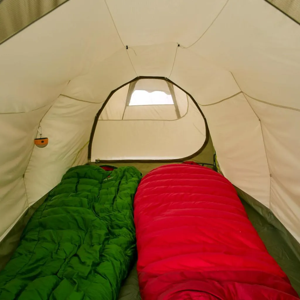 Großes Tunnelzelt mit viel Stauraum in zwei Apsiden. So können selbst auf Touren mit viel Gepäck, wie z. B. beim Paddeln mit Freunden alle Ausrüstungsteile wettergeschützt verstaut werden.