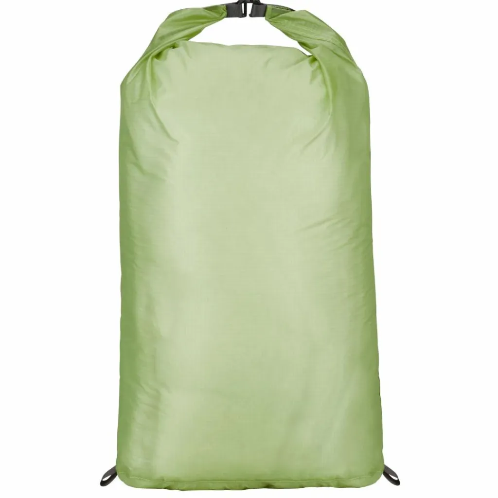 Der leichtgewichtige Sqzy Dry Bag besteht aus silikonisiertem 30D Nylon mit vertapten Nähte. Das macht ihn wasserdicht. Der Rollverschluss ist mit Gurtband verstärkt und wird mit einem praktischen Haken verschlossen. Denk dran, den Rollverschluss mindestens dreimal zu rollen, damit keine Feuchtigkeit von oben eindringen kann.