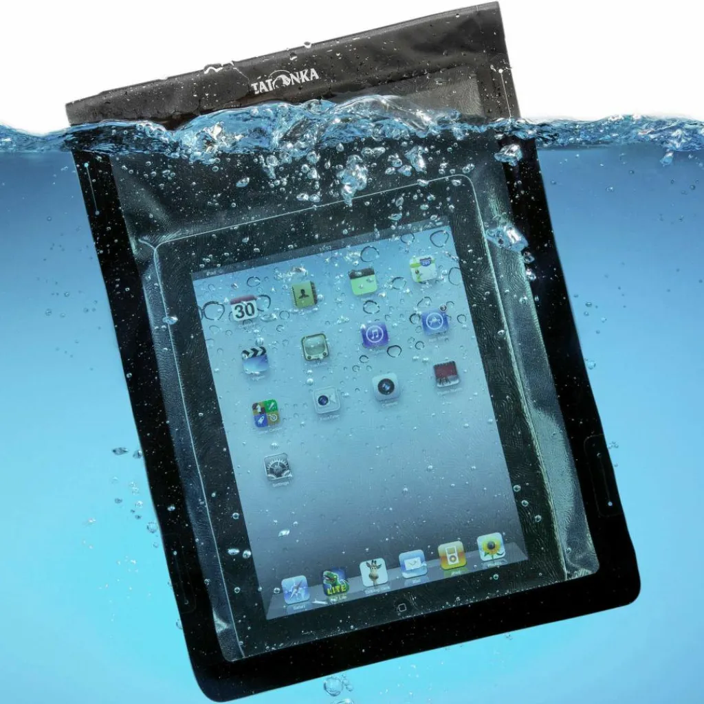 Die Hülle ist mit TPU beschichtet und nahtverschweißt, sodass der Inhalt bei zeitweiligem Untertauchen vor Wasser geschützt ist. Der Rollverschluss mit Klett muss drei Mal gerollt werden, damit kein Wasser eindringt.