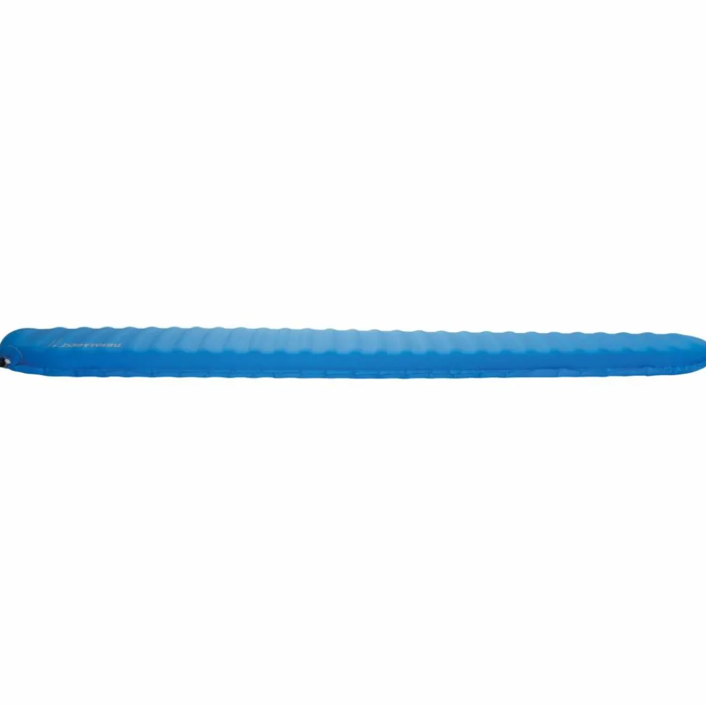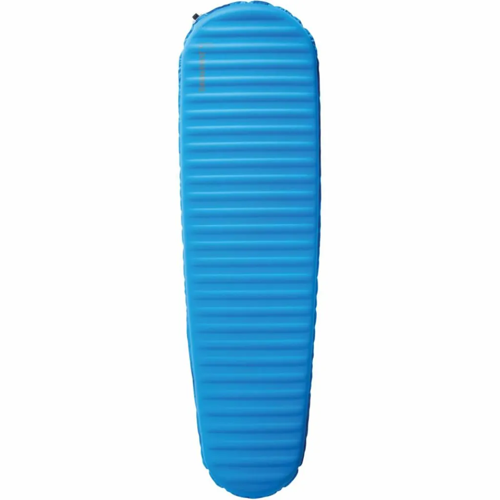 Der Schaumkern bildet im Querschnitt eine durchgängige Mittellage mit aufgesetzten, alternierenden Luft- und Schaumstoffrippen. Ummantelt wird das Ganze von einer strapazierfähigen Unterseite und einem weichen Stretch-Strickgewebe auf der Oberseite. Das sorgt für angenehmen Liegekomfort und reduziert zugleich das Packmaß. Mit 1110 g bleibt das Gewicht in einem Bereich, der für viele Touren gut vertretbar ist.