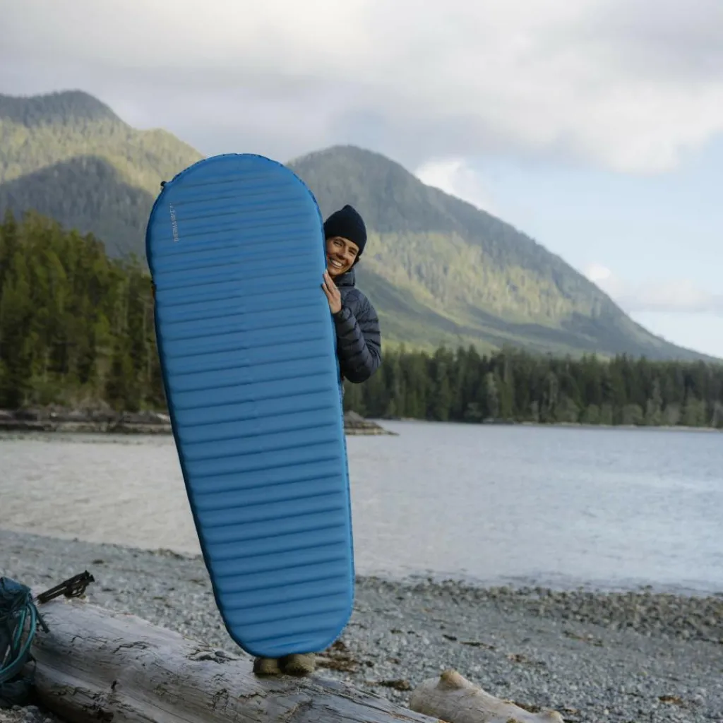 Viele Thermomatten sind dick und leicht, müssen aber mit einem Pumpsack aufgeblasen werden. Andere sind dick, schwer und selbstaufblasend und damit nichts für Touren, bei denen du aus eigener Muskelkraft unterwegs bist. Mit der Trail Pro hat Therm-a-Rest eine leichte, selbstaufblasende Thermomatte konstruiert, die 7,6 cm dick ist und einen R-Wert von 4,4 erreicht. Damit zählt sie zu den leichtesten Modellen ihrer Klasse.