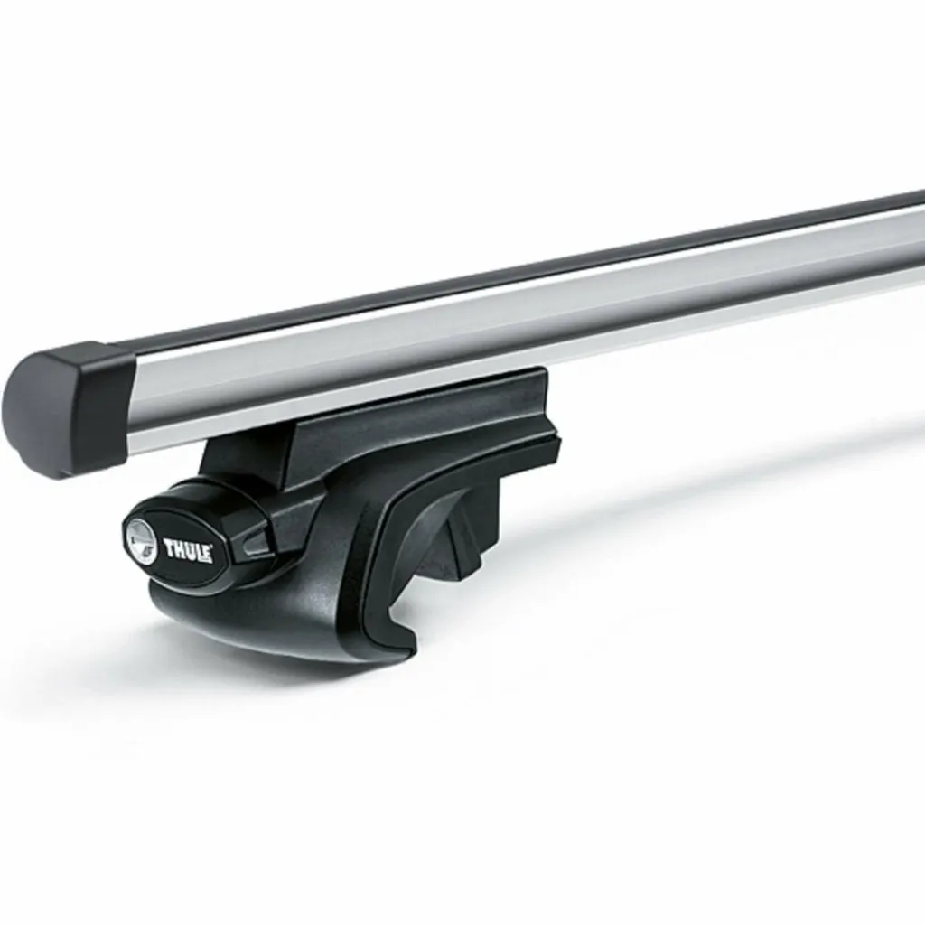 Einfach zu montierende Laststreben für Thule Evo Dachträgersysteme. Zur Befestigung verschiedenster Zubehörteile verfügt die Traverse über drei T-Nuten.