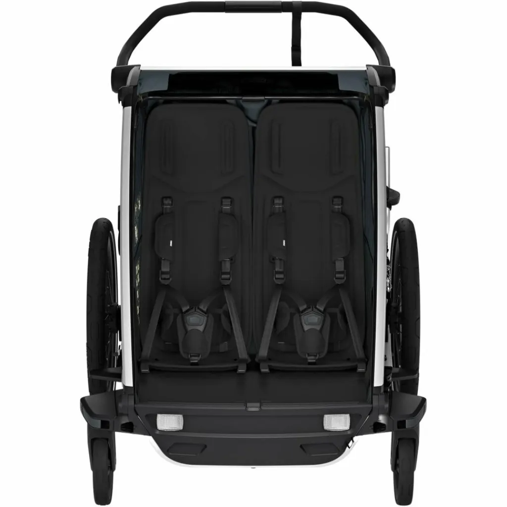 Der Chariot Cross 2 Double als Zweisitzer für aktive Familien bringt einige sinnvolle neue Details mit, die die Bedienfreundlichkeit erhöhen und es dir noch einfacher machen: Die verbesserte Deichsel sowie die beiden verbesserten Vorderräder etwa erlauben einen noch einfacheren Wechsel zwischen Anhänger- und Buggy-Funktion. Ebenfalls prima: Das helle Thule Delight Fahrradrücklicht, das mittig angebracht wird und auch abnehmbar ist. Und natürlich lässt sich der Anhänger weiterhin kompakt zusammenklappen, um ihn etwa im Auto zu transportieren. Ein rundum erstklassiger Anhänger für aktive Familien!