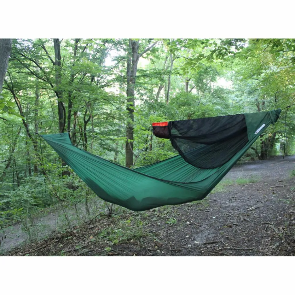 Durch die vier RV-Schieber kannst du von beiden Seite in die Lightest Pro Hammock einsteigen. Das integrierte und verstaubare Mückennetz ist aus hochwertigem Micromesh-Gewebe und bietet dir ausgezeichneten Insektenschutz. Durch das engmaschige Gewebe leitet es auch Wind ab und sorgt so für einen ruhigeren Innenraum. Die Breite erlaubt dir eine bequeme Liegeposition auch für längere Aufenthalte und Übernachtungen.