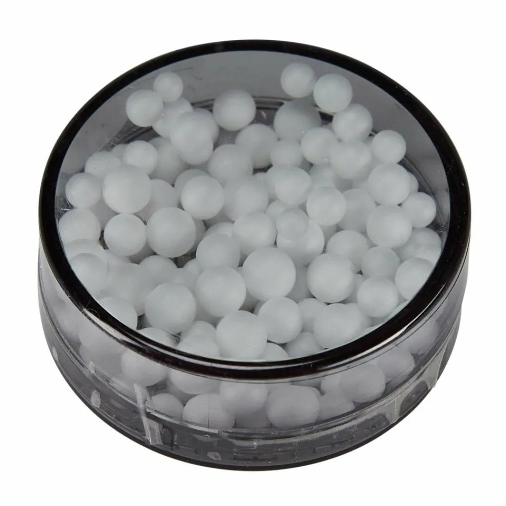 Die kleine Dose spürt Löcher in Schläuchen oder Luftmatratzen schnell und zuverlässig auf. Die Styroporkugeln geraten in Bewegung, sobald sich die Dose in der Nähe der entweichenden Luft befindet.