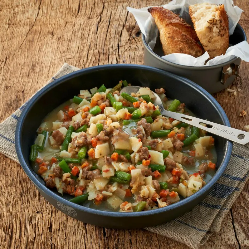 Echte Hausmannskost aus der Tüte, der auf Outdoortouren gerne auch direkt aus ihr gegessen werden kann. Einfach 550 ml kochendes Wasser einfüllen, gut umrühren, 10 Minuten warten und genießen.