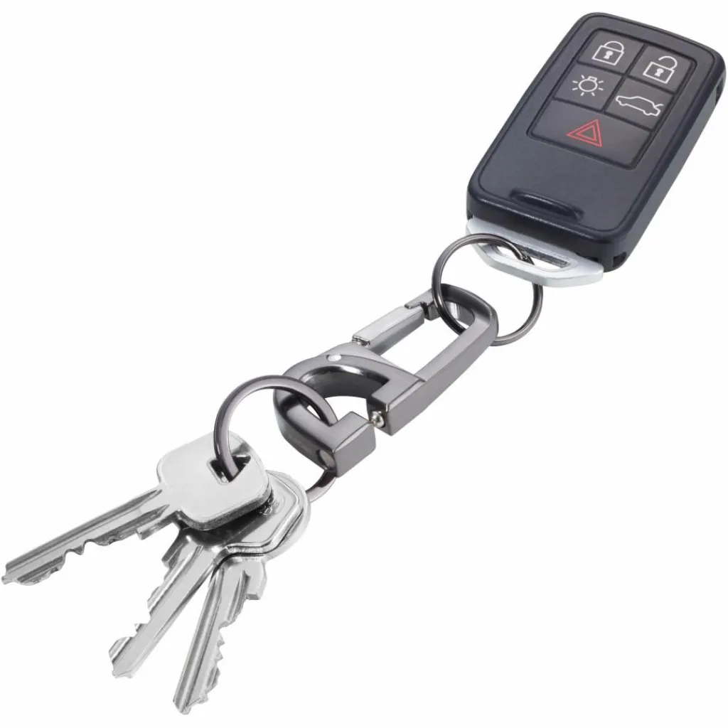 Der Kügelverschluss dieses Schlüsselanhängers, erlaubt das leichte Ein- und Aushaken der Schlüsselringe und ermöglicht damit einen schnellen Wechsel der benötigten Schlüssel.