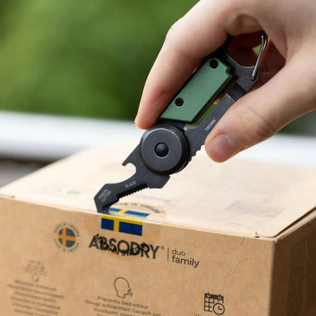 Das Egon Card Mini Tool bietet dir 5 praktische Funktionen und dient als Helfer im Alltag. Mit einem Griff an den Schlüsselbund kannst du so Pakete und Flaschen öffnen oder Schrauben festziehen.