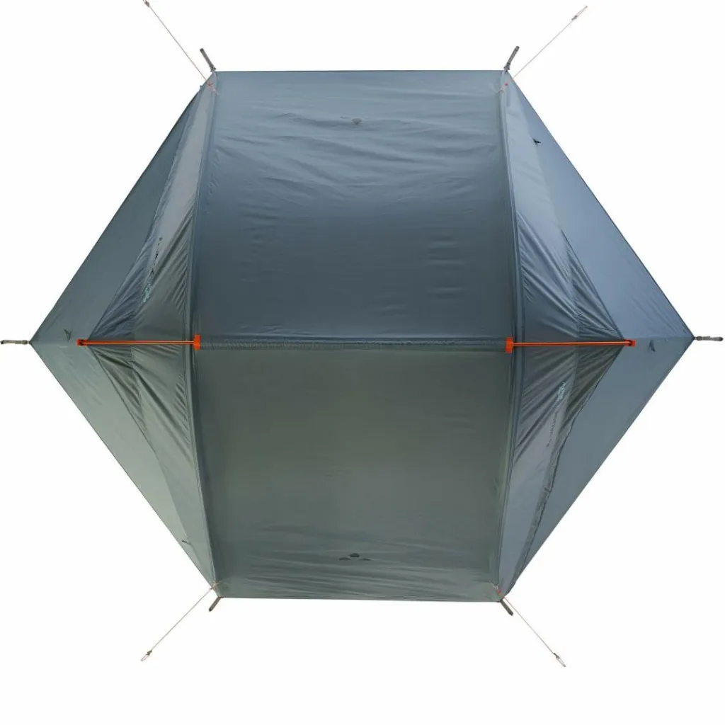 Ein einfacher Aufbau bei milder Witterung gelingt mit nur zwei Heringen, die jeweils an einer Apside befestigt werden. Erwartest du hingegen schlechtes Wetter, kannst du das Zelt mit bis zu zehn Heringen abspannen. Die geräumigen Apsiden bieten ausreichend Platz für deine Ausrüstung und verfügen über zwei Eingänge, sodass du das Zelt immer zur windabgewandten Seite verlassen kannst. In die Eingänge sind zwei Lüfter integriert, die du bei Bedarf verschließen kannst.