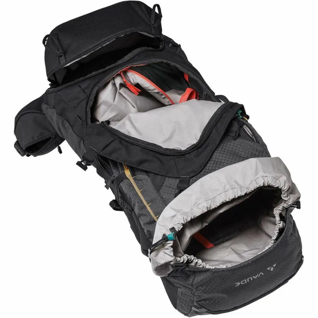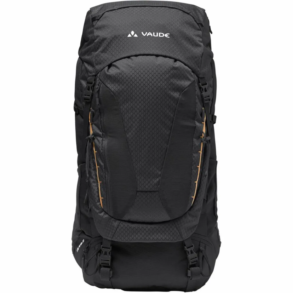 Für idealen Tragekomfort ist der Avox 60+10 mit Vaudes Tergolight Comfort Space Pro Tragesystem ausgestattet. Dieses lässt dich zum einen die Rückenlänge individuell einstellen, sodass der Trekkingrucksack passgenau sitzt und sich auch bei größerem Gewicht bequem trägt. Für noch mehr Komfort befindet sich auf Hüfthöhe eine Aussparung, die das Iliosakralgelenk und dadurch den unteren Rücken entlastet – an langen Tagen mit schwerem Gepäck ein großer Vorteil. Die ergonomisch geformten Schultergurte geben dir die Bewegungsfreiheit, die du in unwegsamerem Gelände brauchst, und der weich gepolsterte Hüftgurt sorgt für eine ideale Lastenübertragung.