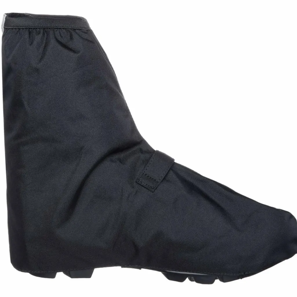 Die Überschuhe sind mit einem durchgehenden Klettverschluss an der Rückseite ausgestattet, wodurch sie bei Bedarf einfach übergezogen werden können. Die Sohle ist, von der Fußspitze abgesehen, offen. Ein Gummi unter dem Mittelfuß hält die Überschuhe in Position. Der Klettverschluss auf dem Spann dient zur Weitenanpassung. Für Schuhe mit SPD-Cleats geeignet.