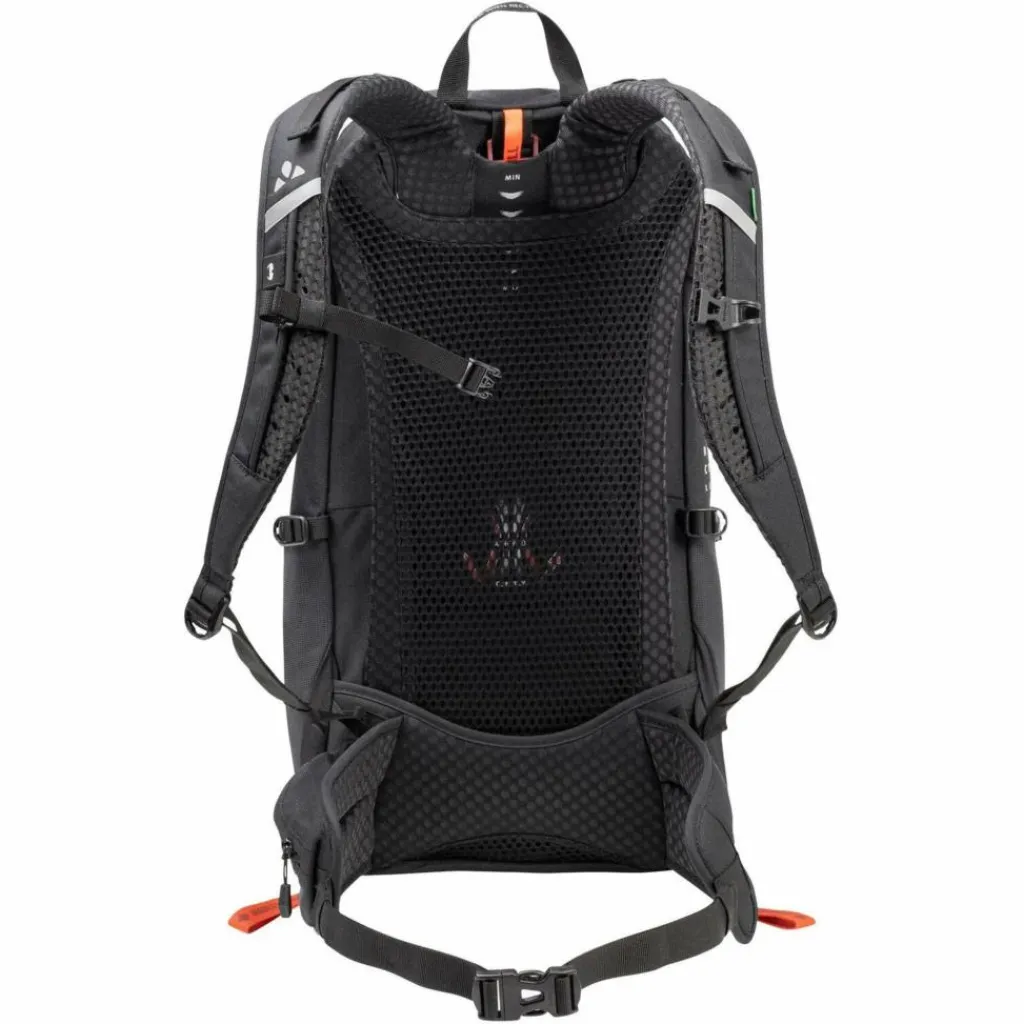 Zur Ausstattung gehören darüber hinaus elastische Seitentaschen, ein separates Trinkblasenfach, Kompressionsriemen im Seitenbereich, ein Loop auf dem Träger für die Sonnenbrille und eine Regenhülle, die sich im separaten Bodenfach des Rucksacks befindet. Das bluesign-zertifizierte, recycelte Material des Moab Control 20 Mountainbike Rucksacks ist mit Eco Finish umweltfreundlich wasserabweisend ohne Fluorcarbone (PFC) hergestellt. Das VAUDE Green Shape-Label steht für ein umweltfreundliches, funktionelles Produkt aus nachhaltigen Materialien.