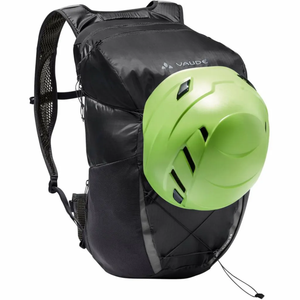 Die Kordel auf der Front ist besonders praktisch. Mit ihr kannst du nicht nur zusätzlich den Sitz des Fahrradrucksacks regulieren. Sie dient auch als Helmhalterung und hält deine Jacke sicher fest. Damit du während des Fahrens trinken kannst, verfügt der Brustgurt über eine Halterung für einen Trinkschlauch.