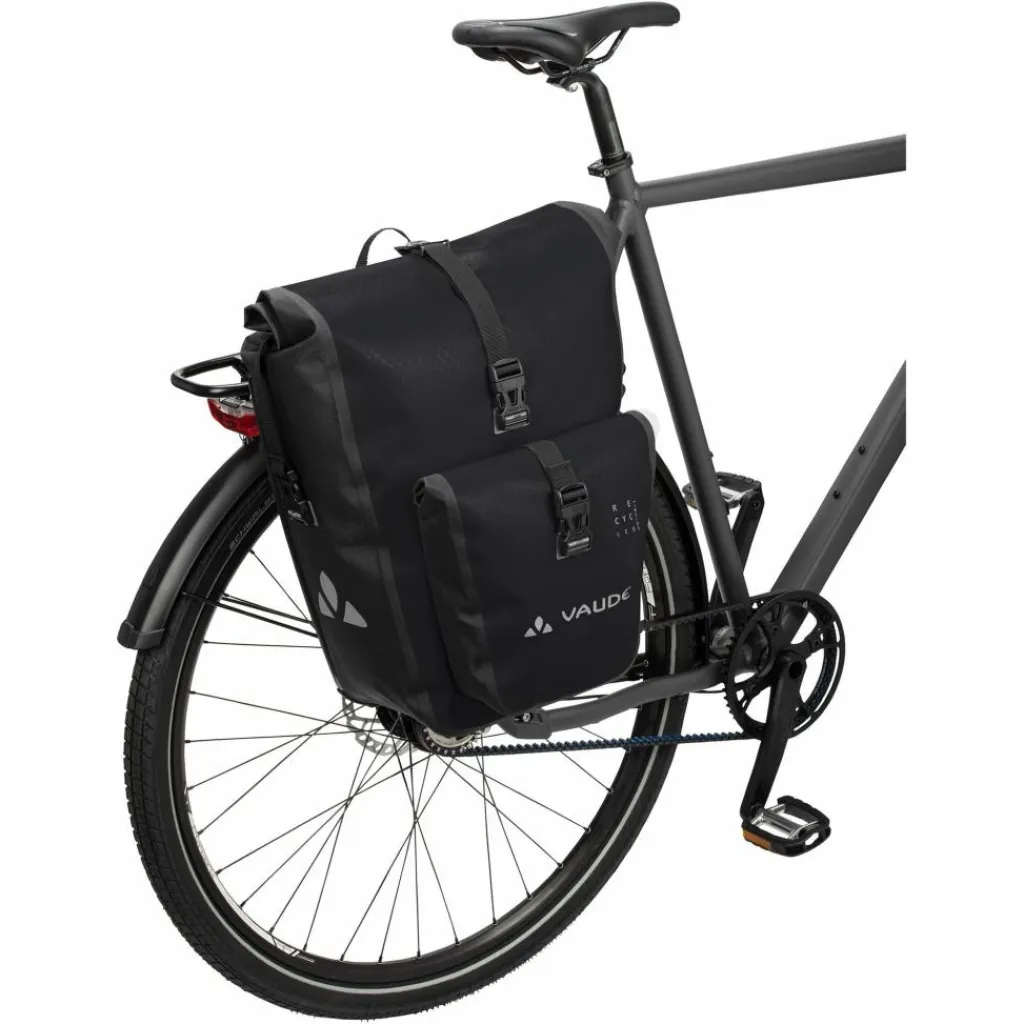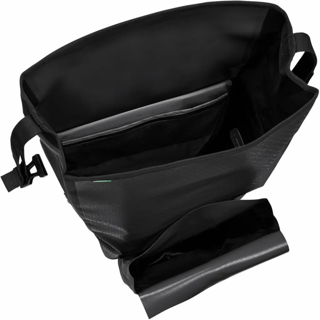 Der Unterschied zur klassischen Vaude Aqua Back Single ist das Zusatz-Außenfach, das aufgeschweißt ist. Dank Rollverschluss hält dieses Fach ebenso dicht wie das Hauptfach. Großes und kleines Fach der Tasche lassen sich mit dem Rollverschluss dicht verschließen. Durch die symmetrische Rückenplatte kannst du die Fahrrad-Gepäcktasche links oder rechts montieren. Eine extra Innentasche schafft Übersicht.