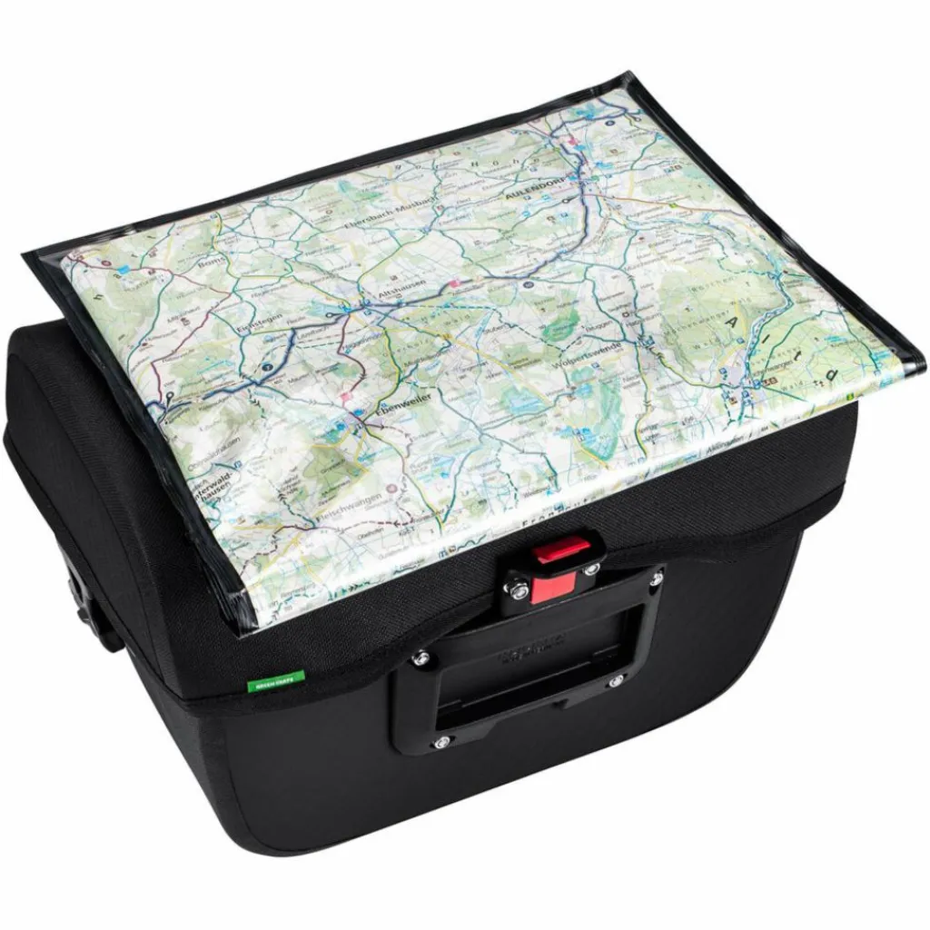Die Vaude Aqua Box in der sehr nachhaltigen Variante: Hier bekommst du die praktische Lenkertasche mit durchweg recyceltem Material und PVC-freier, wasserdichter PU-Beschichtung.
