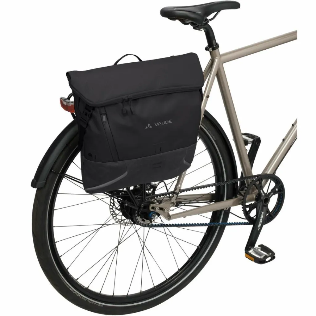 Die gesamte Radtasche ist wasserabweisend beschichtet und hält leichten Regen ab. Bei starkem Regen kannst du die mitgelieferte Regenhülle überziehen, um den Inhalt sicher vor Wasser zu schützen.