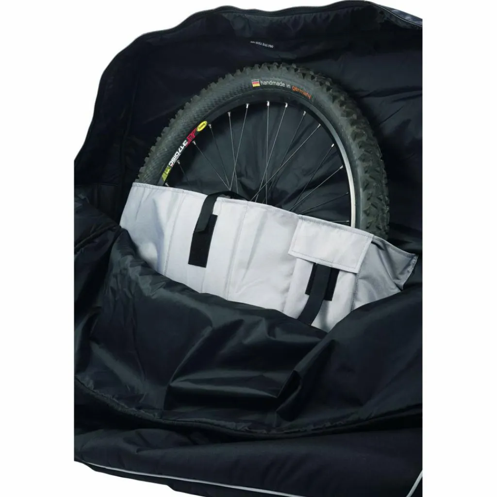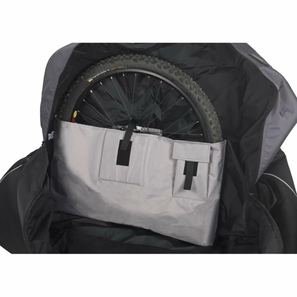 Räder ausbauen, Lenker quer stellen und einpacken! Rahmen und Laufräder sind in der robusten Big Bike Bag Transporttasche in Windeseile sauber verpackt. Über je zwei lange und kurze Träger kannst du die Tasche sicher in der Hand oder über der Schulter tragen.