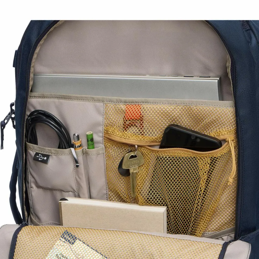Deinen Laptop hast du unterwegs immer griffbereit, denn der Kofferrucksack ist mit einem praktischen Frontfach ausgestattet, in dem du dein Arbeitsgerät, Stifte und Ladekabel übersichtlich unterbringen kannst. Auch Reisepass, Boardingpass und Co. sind dank des Kopffachs immer nur einen Handgriff entfernt. Und im Hotel freust du dich über das weit aufklappbare Hauptfach, welches das Bepacken und Sortieren zum Kinderspiel macht.