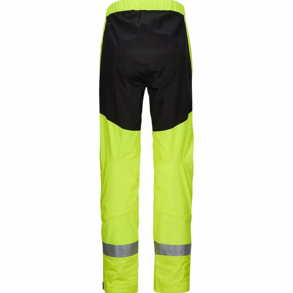Diese Regenhose macht deine Beine unübersehbar: Die Luminum Rain Pants hat eine starke neongelbe Farbe und große reflektierende Flächen. So wirst du auch an trüben Tagen sehr gut wahrgenommen.