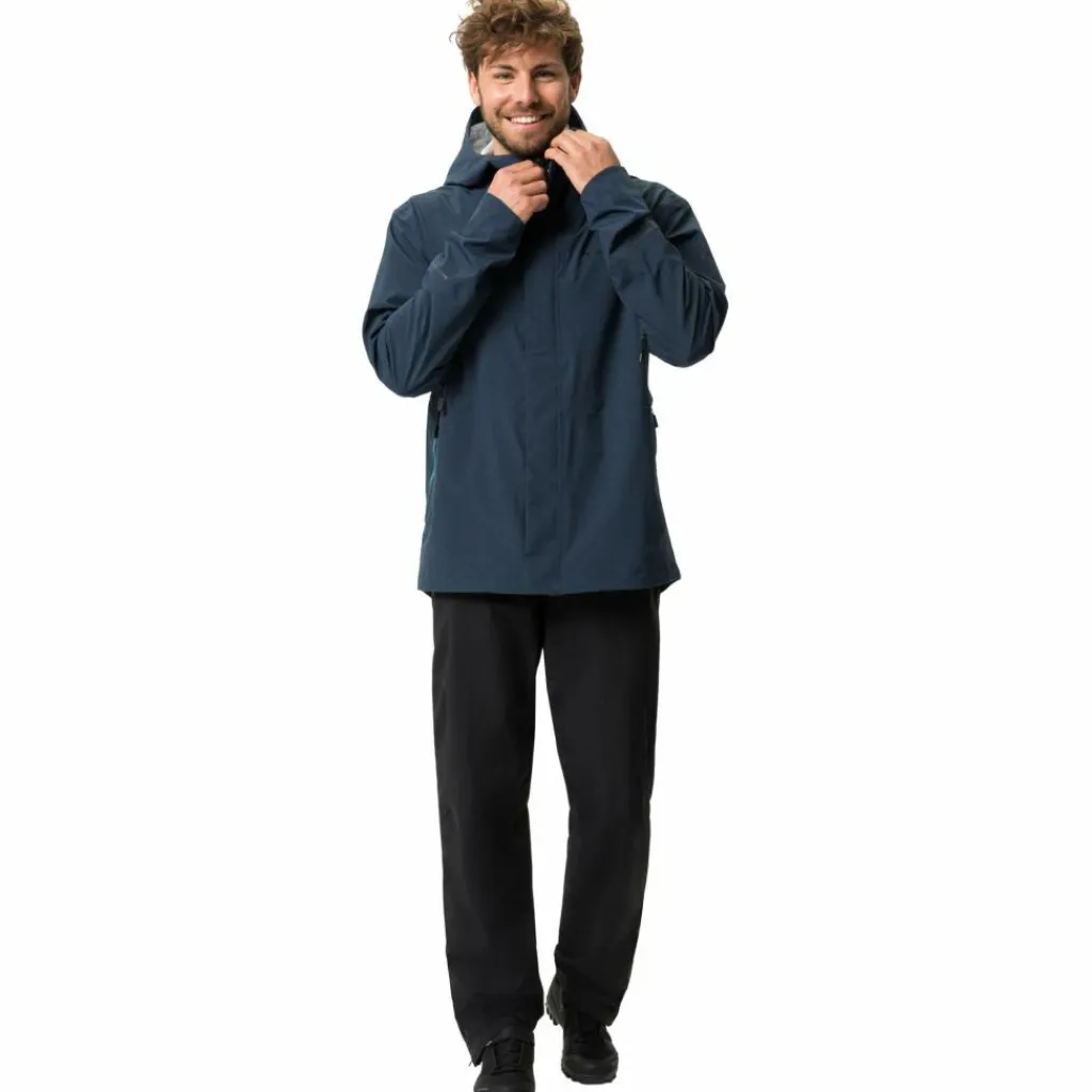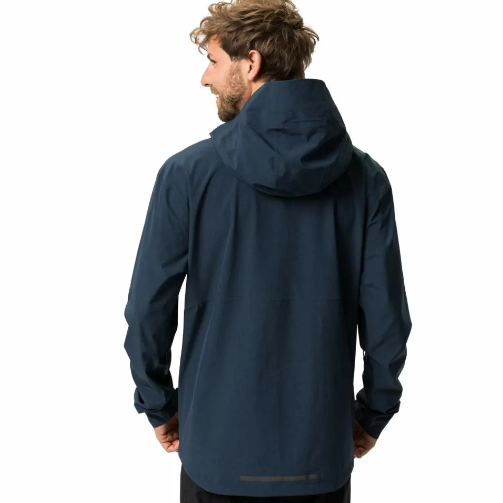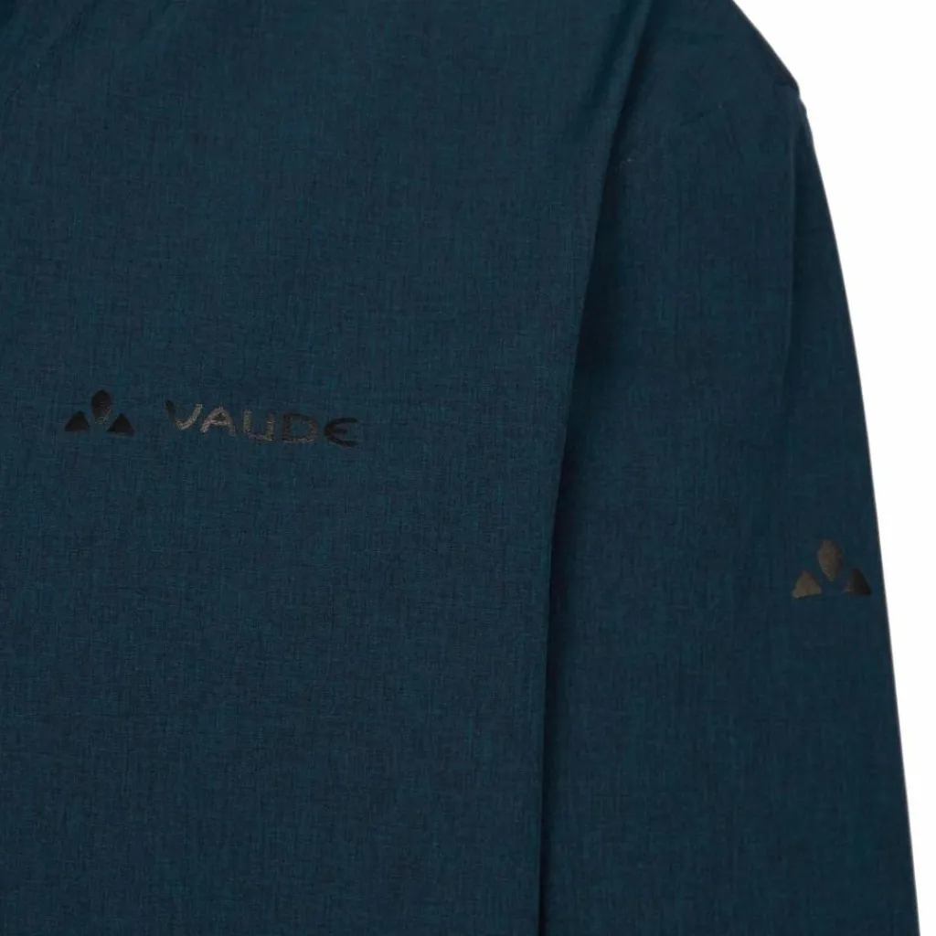 Die Jacke ist fast komplett aus Recycling-Polyester gefertigt, die DWR-Imprägnierung sowie auch die Membran PFC-frei. Das Vaude Green Shape-Label steht für ein umweltfreundliches, funktionelles Produkt aus nachhaltigen Materialien.