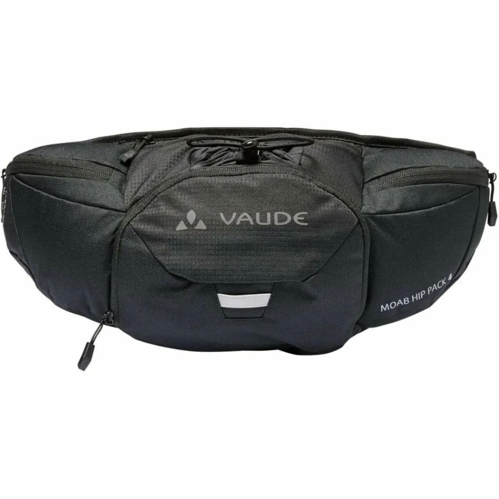 Herzstück der Tasche bildet das mittlere Frontfach mit seiner ausgeklügelten Aufteilung. Im Frontflap befindet sich ein Mesh-Reißverschlussfach, 2 Steckfächer organisieren das Werkzeug und ein extra für den Ersatzschlauch vorgesehenes Fach sorgt für Ordnung. Zwischen dem gepolsterten Rücken und dem Trinkflaschenfach wurde eine Reißverschluss-Tasche für Wertsachen integriert. Wird die Trinkflaschenhalterung nicht benötigt, findet in ihr auch ein Ersatztrikot oder eine Windjacke Platz. Eine Regenhülle für Schutz vor Schauern und Schmutz sowie ein reflektierender Webbingloop und das reflektierende Vaude Logo runden dieses Komfortpaket mit 4 l Volumen ab.
