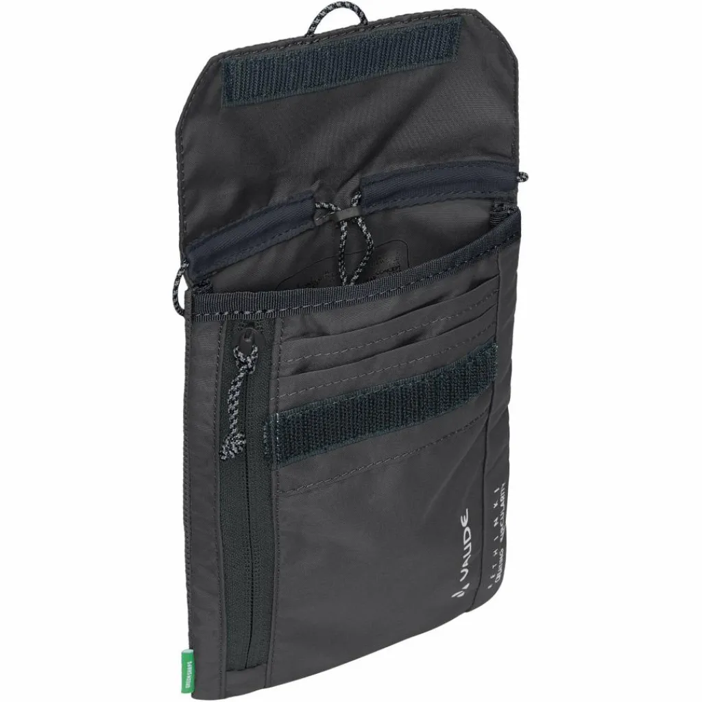 Der Brustbeutel besteht fast vollständig aus PET-Polyester. Die orangefarbene Markierung bedeutet, dass der betroffene Teil aus einem anderen Material besteht. Um am Produktlebensende ein sortenreines textiles Recycling zu ermöglichen, kann der Teil mit der Markierung einfach abgenommen werden. Der Neckwallet ist mit einer PFC-freien DWR-Imprägnierung wasser- und schmutzabweisend ausgerüstet.