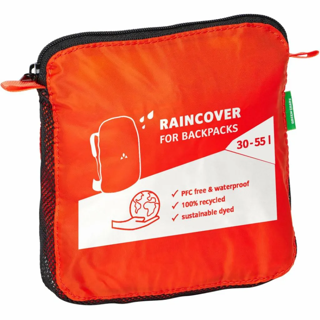 Vaudes Rucksack-Regenhülle lässt über Platzregen nur müde lachen. Ruckzuck ist die Regenhülle durch den Gummizug sicher am Rucksack befestig. Bei der Überarbeitung der Rucksack-Regenhülle wurde besonderer Wert auf noch mehr Nachhaltigkeit gelegt: Das Material ist nun vollständig recycelt und dank PFC-freien Eco Finishs perlen Wasser und Schmutz einfach ab. Das Vaude Green Shape-Label steht für ein umweltfreundliches, funktionelles Produkt aus nachhaltigen und bluesign zertifizierten Materialien.