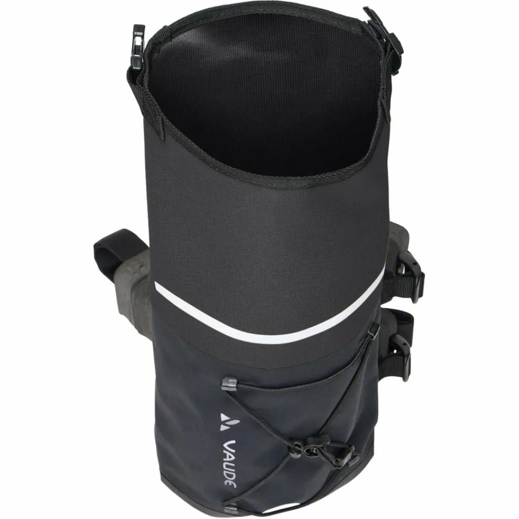 Das Hauptmaterial der Lenkerrolle wird aus recyceltem Polyamid hergestellt, das in einem Upcycling-Prozess aus textilen Materialien, z. B. gebrauchten Fischernetzen, gewonnen wird. Die Trailfront Compact wird am besten mit der Trailfsaddle Compact kombiniert, um das kleine Wochenendgepäck vollständig – ganz ohne Gepäckträger – am Rad zu befestigen. Das Vaude Green Shape-Label steht für ein umweltfreundliches, funktionelles Produkt.