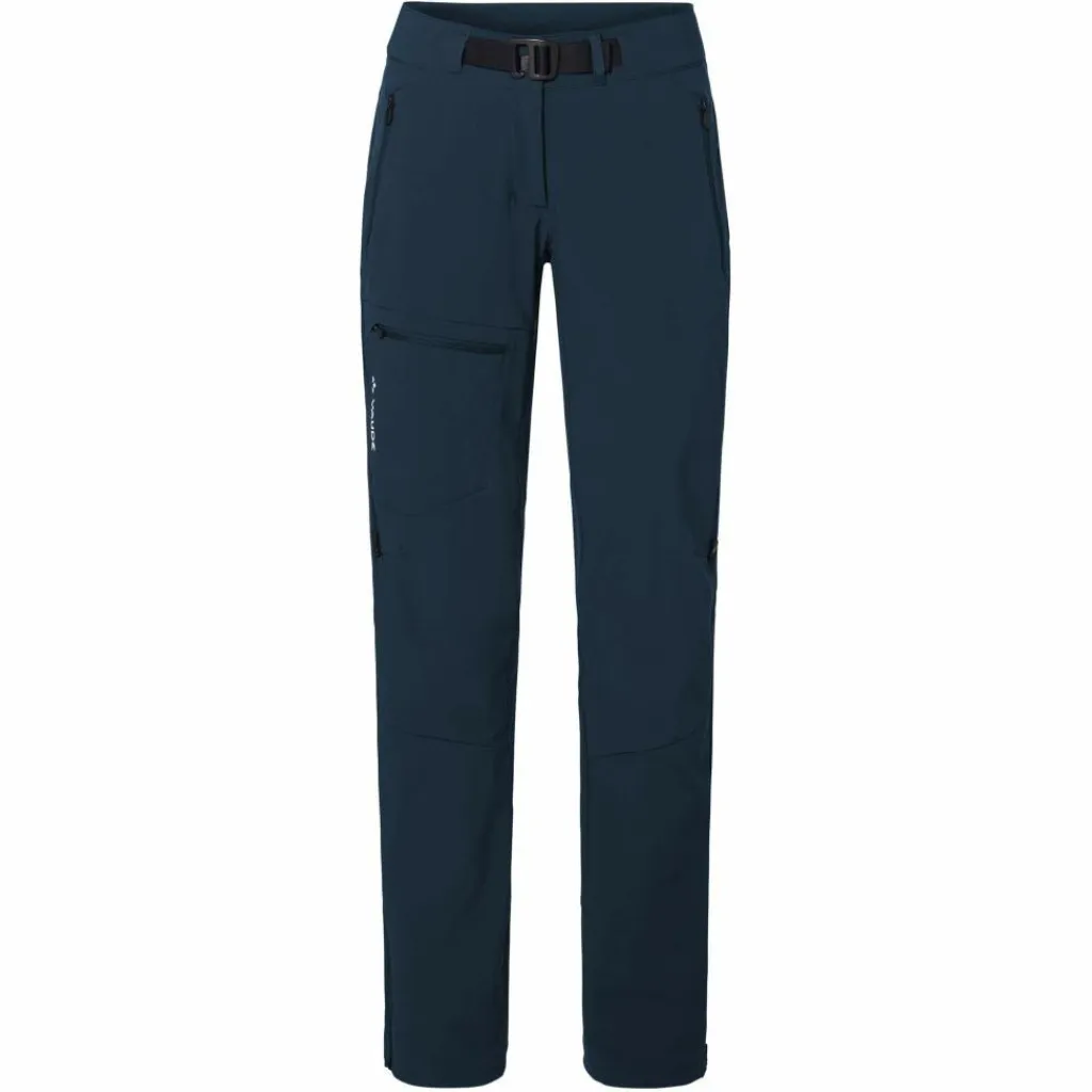 Der Bund mit integriertem Gürtel sorgt für einen sicheren Sitz, während zwei Seitentaschen und eine Reißverschluss-Beintasche ausreichend Stauraum für wichtige Utensilien bieten. Der Beinabschluss ist mit einem Reißverschluss und einer elastischen Kordelverstellung ausgestattet und mit einem Stoffkeil hinterlegt, sodass die Kletterhose optimal an verschiedene Bergschuhe angepasst werden kann und immer ein sauberer Abschluss gewährleistet ist. Mit ihrem robusten, aber leichten Material und der sportiven, dabei komfortablen Passform ist sie die ideale Wahl für lange Wanderungen und alpine Abenteuer. Der Oberstoff der Softshellhose ist mit Eco Finish wasser- und schmutzabweisend ausgerüstet.