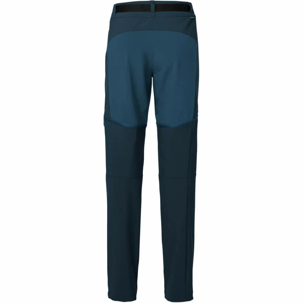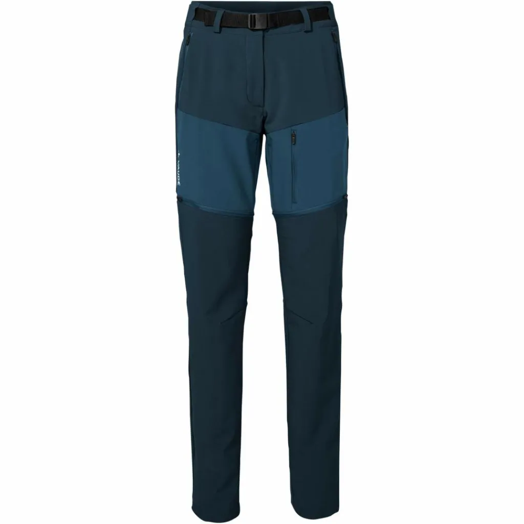 Der integrierte Gürtel lässt sich stufenlos auf die passende Weite einstellen und verfügt über eine flache Kunststoff-Schnalle, die unter einem Rucksack nicht stört. Vier Reißverschluss-Taschen bieten Platz für diverse Kleinigkeiten, die du schnell erreichen, aber auch sicher verwahren möchtest. Umweltfreundlich ist die Softshellhose natürlich auch: Das verwendete Polyester ist komplett recycelt, die Hose gehört zu Vaudes nachhaltiger Green Shape-Kollektion. Bei der Herstellung wurde somit auf Umweltfreundlichkeit und nachhaltige Materialien Wert gelegt.