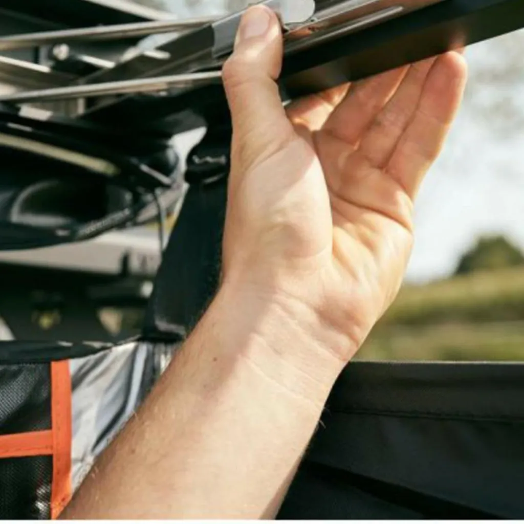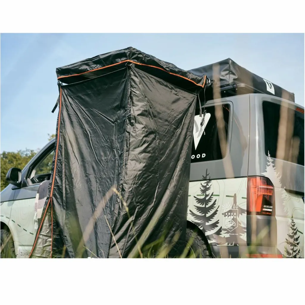 Das Duschzelt lässt sich über ein stufenloses Schienensystem ganz einfach an deinem Dachträger montieren. Durch zwei ausklappbare ist das Duschzelt im Handumdrehen einsatzbereit, der Aufbau dauert mit etwas Erfahrung nicht mal eine Minute! So ist dein Spa-Bereich immer mit von der Partie.