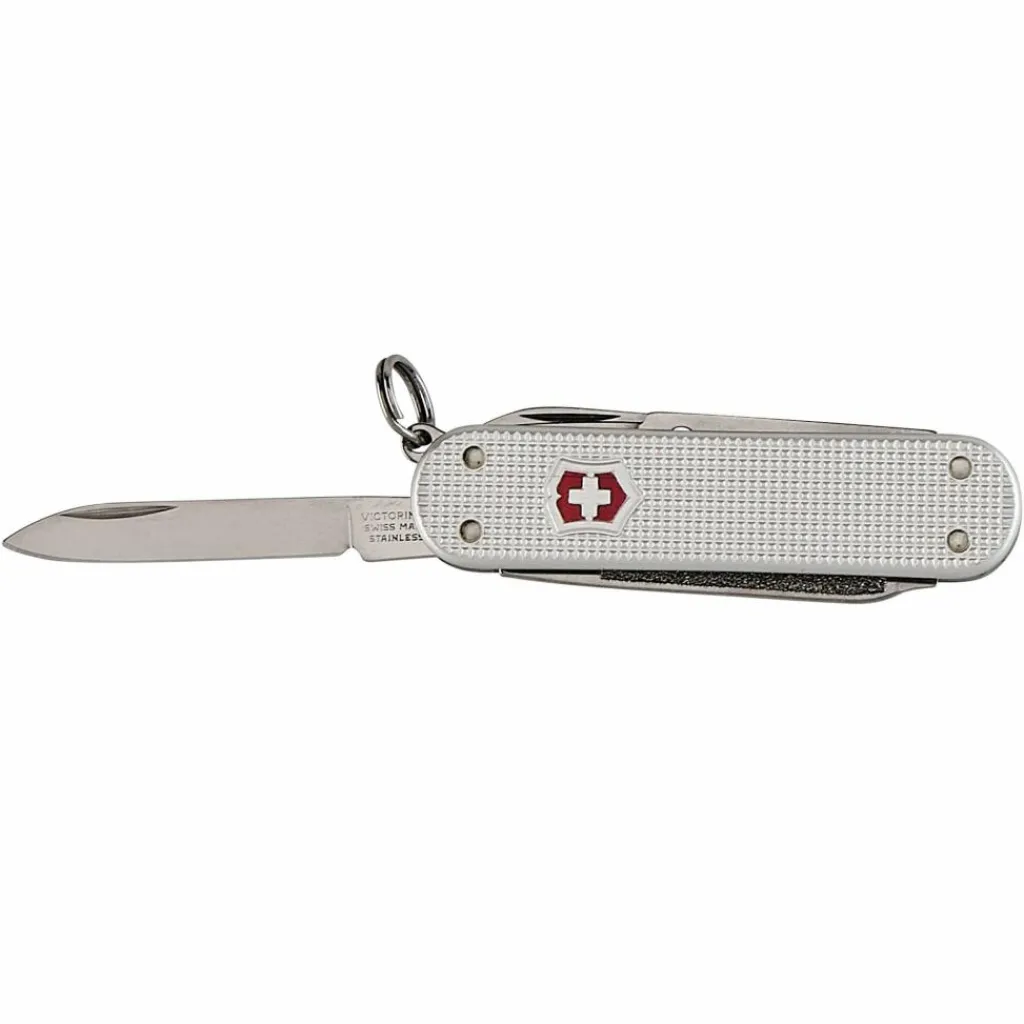 Das nur knapp 6 cm lange Taschenmesser kann mühelos am Schlüsselbund befestigt werden. Andernfalls verschwindet es unauffällig in der Hosen- oder Handtasche. Hergestellt in gewohnter Schweizer-Qualität und ideal geeignet, um es immer dabei zu haben. Das Classic SD Alox ist dafür mit fünf Funktionen ausgestattet: