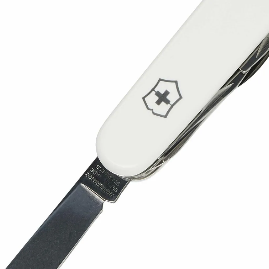 Alle Werkzeugteile des Messers bestehen aus rostfreiem Inox-Stahl (Werksbezeichnung 1.4110 – in den USA auch bekannt als 440A) mit einer Härte von 56 HRC. Das Material zeichnet sich durch eine mittlere Schnitthaltigkeit aus und lässt sich auch von Anfängern leicht nachschärfen. Mit etwas Übung gelingt es, die Messerklinge auf Rasiermesserschärfe zu schleifen. Victorinox setzt seit den Anfängen auf diesen bewährten Werkzeugstahl.