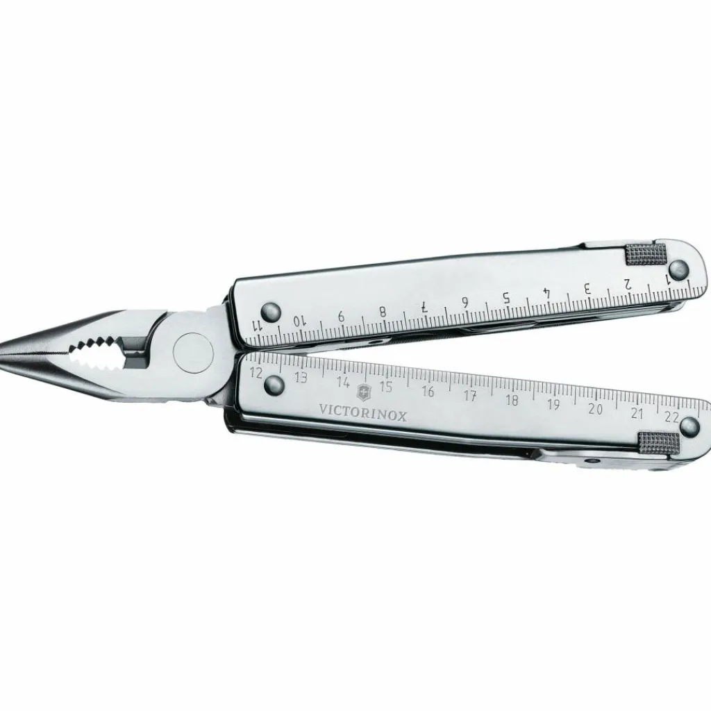 Alle Werkzeugteile des Multitools bestehen aus rostfreiem Inox-Stahl (Werksbezeichnung 1.4110 – in den USA auch bekannt als 440A) mit einer Härte von 56 HRC. Das Material zeichnet sich durch eine mittlere Schnitthaltigkeit aus und lässt sich auch von Anfängern leicht nachschärfen. Mit etwas Übung gelingt es, die Messerklinge auf Rasiermesserschärfe zu schleifen. Victorinox setzt seit den Anfängen auf diesen bewährten Werkzeugstahl.