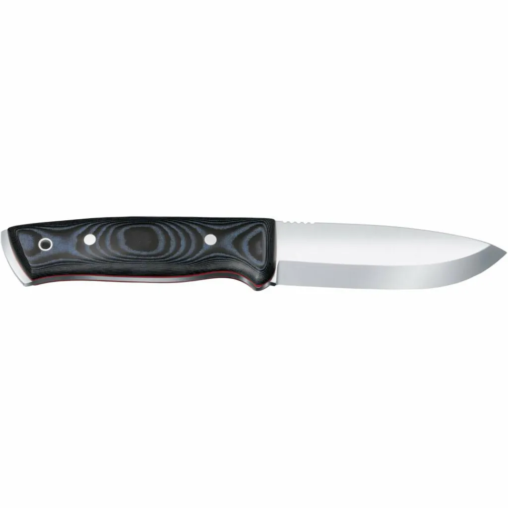 Das schlichte und dennoch formschöne Outdoor Master Mic L ist universell einsetzbares Survival- und Bushcraftmesser. Die Klinge aus 1.4116 Stahl ist rostfrei und eignet sich mit ihrem Scandischliff hervorragend zum Schnitzen. Aber auch etwas gröbere Gangarten wie das Batoning nimmt sie dir nicht krumm. Der Messerrücken ist scharf angeschliffen, wodurch du mühelos Funken mit dem beiliegenden Feuerstahl erzeugen kannst.