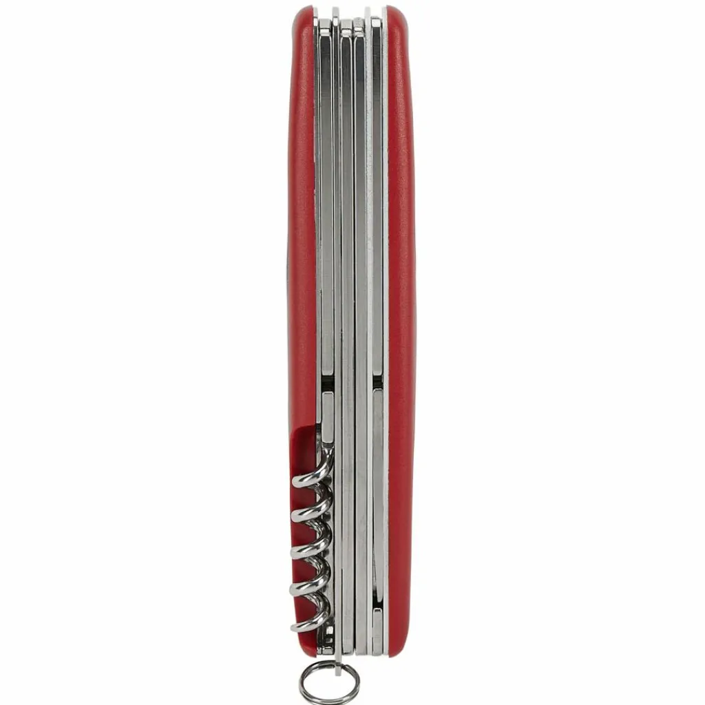 Alle Werkzeugteile des Messers bestehen aus rostfreiem Inox-Stahl (Werksbezeichnung 1.4110 – in den USA auch bekannt als 440A) mit einer Härte von 56 HRC. Das Material zeichnet sich durch eine mittlere Schnitthaltigkeit aus und lässt sich auch von Anfängern leicht nachschärfen. Mit etwas Übung gelingt es, die Messerklinge auf Rasiermesserschärfe zu schleifen. Victorinox setzt seit den Anfängen auf diesen bewährten Werkzeugstahl.