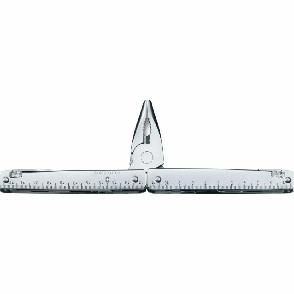 Alle Werkzeugteile des Multitools bestehen aus rostfreiem Inox-Stahl (Werksbezeichnung 1.4110 – in den USA auch bekannt als 440A) mit einer Härte von 56 HRC. Das Material zeichnet sich durch eine mittlere Schnitthaltigkeit aus und lässt sich auch von Anfängern leicht nachschärfen. Mit etwas Übung gelingt es, die Messerklinge auf Rasiermesserschärfe zu schleifen. Victorinox setzt seit den Anfängen auf diesen bewährten Werkzeugstahl.