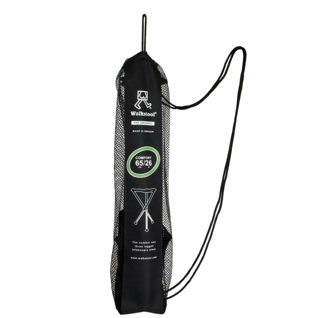 Der Walkstool Comfort macht seinem Namen alle Ehre. Er ist durch die breite Sitzfläche äußerst bequem und kann zum Transport klein verpackt in der Umhängetasche mitgenommen werden.