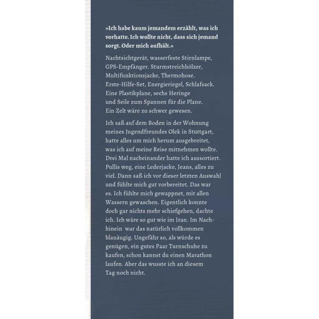 Er hat keine Ahnung, wie hart der Weg werden wird und wie er wieder zurückkommen soll. Für ihn zählt nur eins: das Lächeln seiner Mutter. »Ich habe kaum jemandem erzählt, was ich vorhatte. Ich wollte nicht, dass sich jemand sorgt. Oder mich aufhält.« Mehdi Maturi