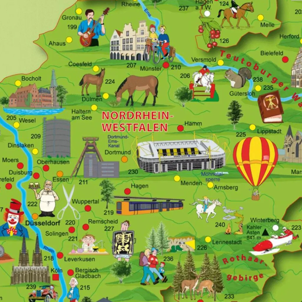 Informatives, unterhaltsames und dekoratives Poster:Alles, was das Land der Dichter und Denker, der abwechslungsreichen Landschaft, der Entdecker und Pioniere ausmacht. Zeitgeschichte plus Sehenswürdigkeiten, Tipps für Freizeit, Natur- und Tierwelt, Skurriles und Witziges, neben Wissenswertem. Bundesländer mit ihren Hauptstädten, Städte, Berge, Flüsse, alles übersichtlich in einer umfangreichen Legende besprochen: So macht Entdecken einfach Spaß! Für die ganze Familie und ideal als Geschenk für alle, die mehr über Deutschland erfahren möchten.
